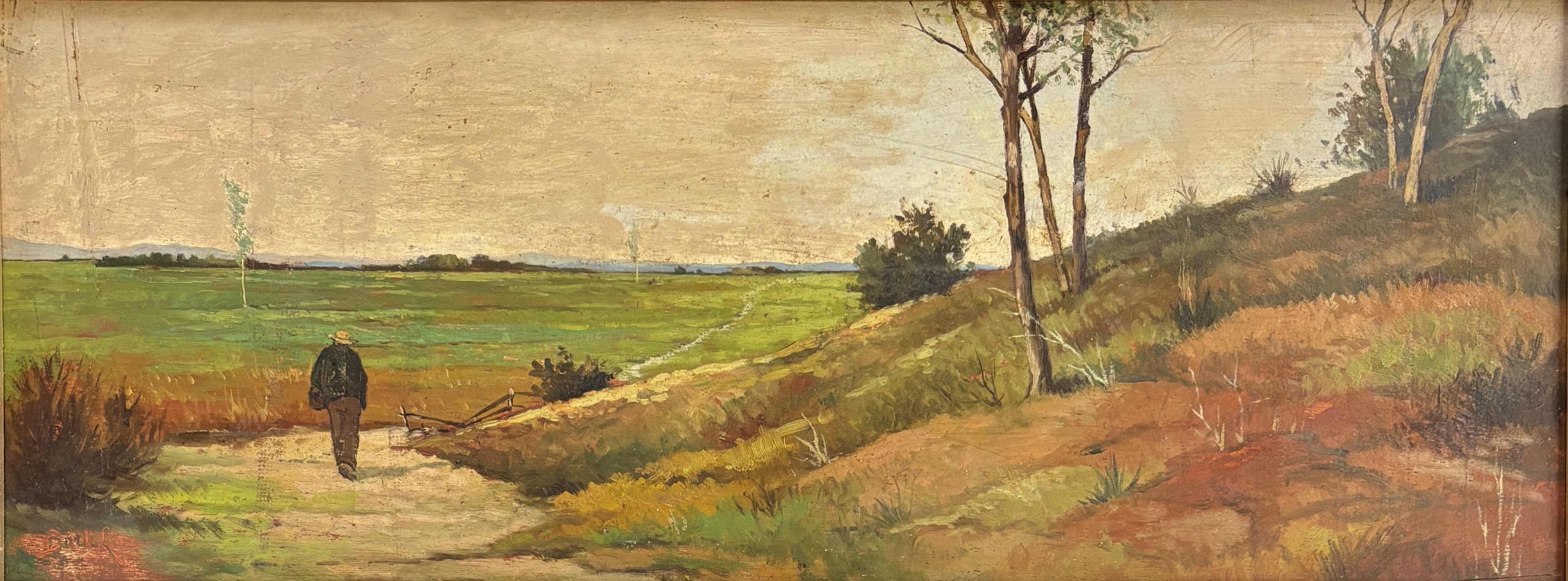 OLIO SU CARTONCINO CM 24X63 FIRMATO IN BASSO A SX